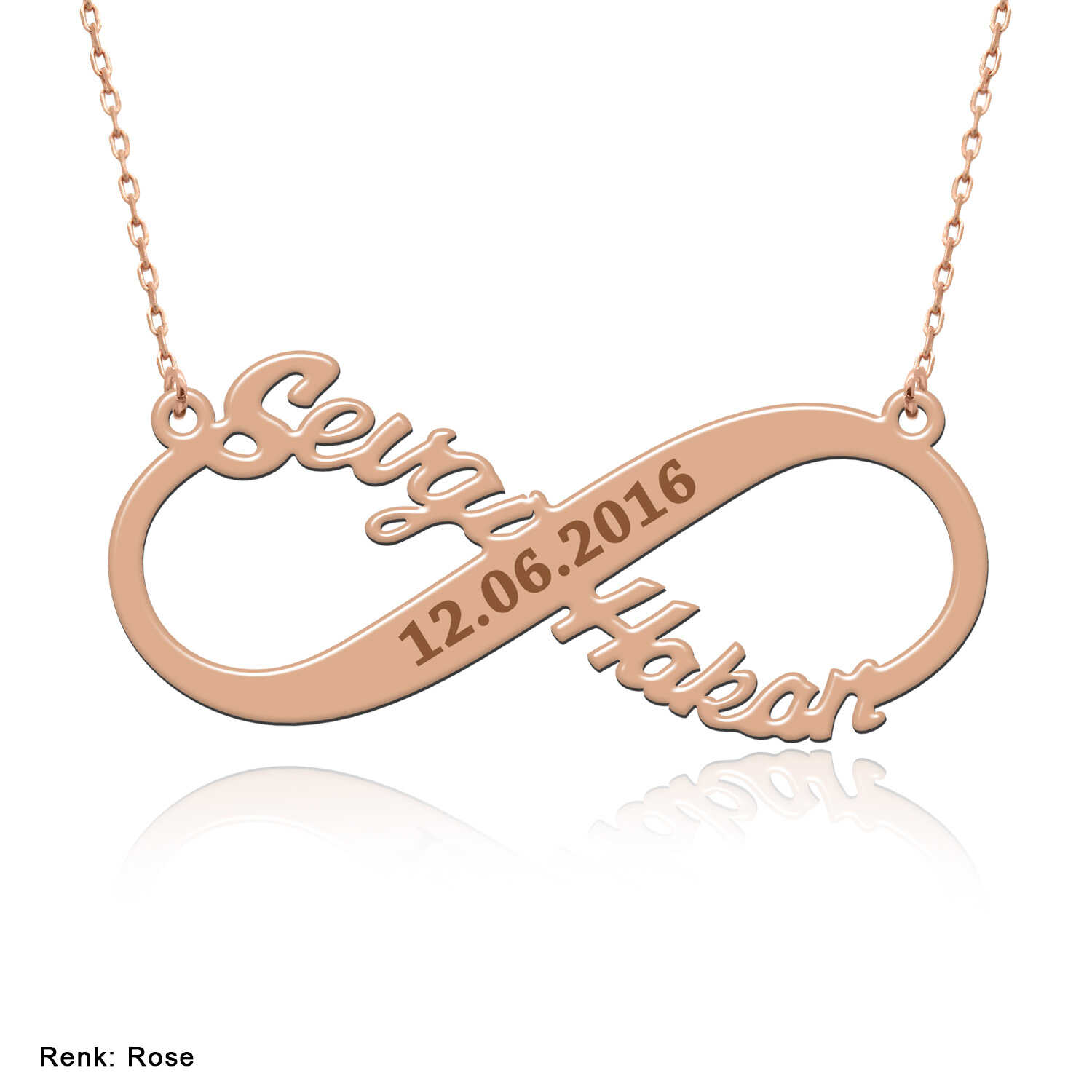 Sizin ve en değerlinizin isimleri ve tam ortasında ise o özel tarihin yazılı olduğu bu şık ve bir o kadar anlamlı sonsuzluk gümüş kolye ile aşkınız sonsuzluğa uzansın.