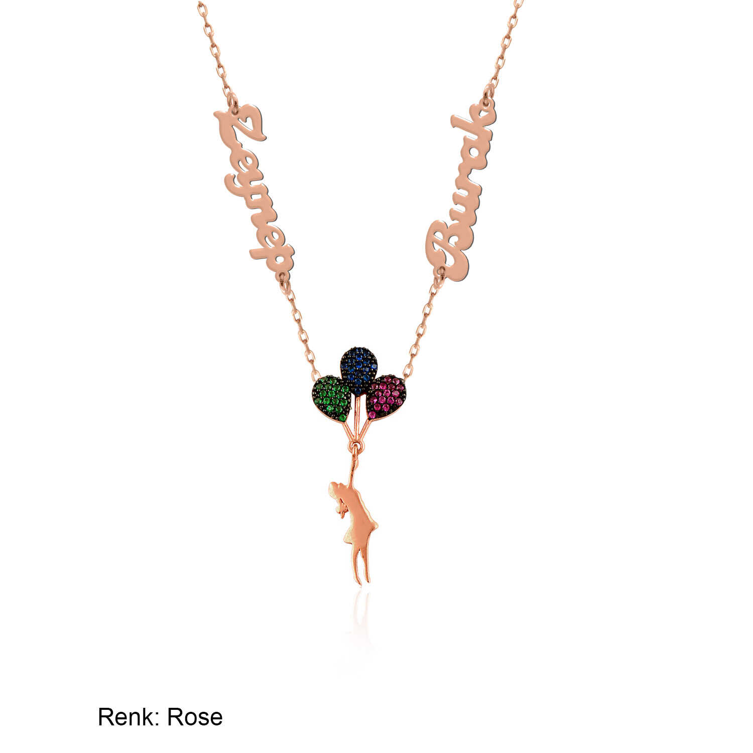 5. Kişiye Özel Renkli Balonlu Kız Gümüş Kolye