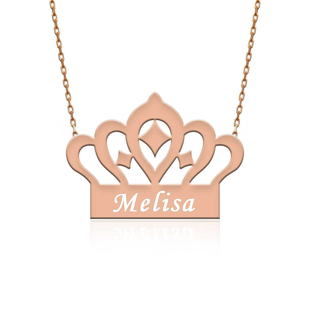 9. Rose Kişiye Özel İsimli Kraliçe Tacı Gümüş Kolye