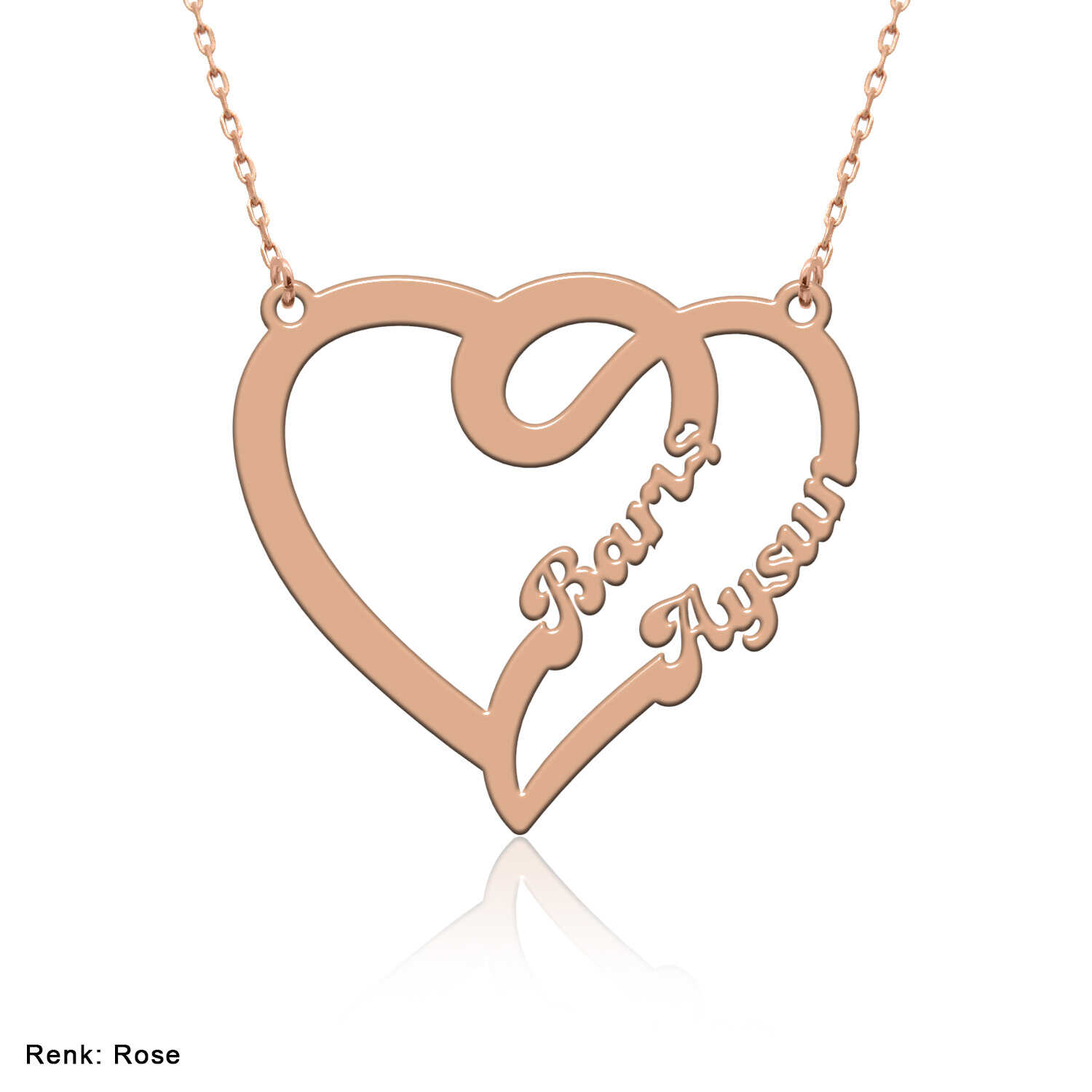 İç içe geçmiş iki seven kalp ve kişiye özel isim yazdırabileceğiniz bu harika gümüş kolye ile kalpleriniz her zaman bir olsun.